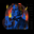 Description image : une personne chic avec son costard, son noeud papillon et ses rouflaquettes, parle devant un micro. Il est recouvert d'une peinture bleu, alors que des flammes brûlent derrière ellui.